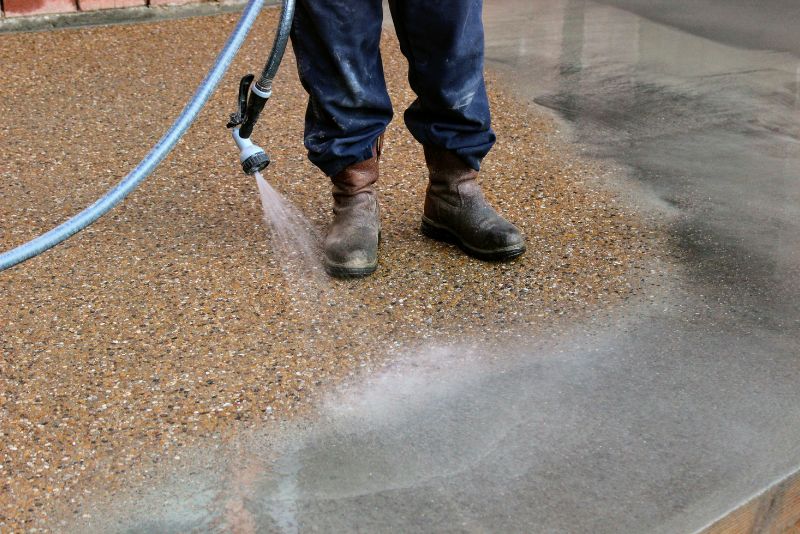 – Use a garden hose to rinse off any soap or cleaning products that you use on your exposed aggregate.